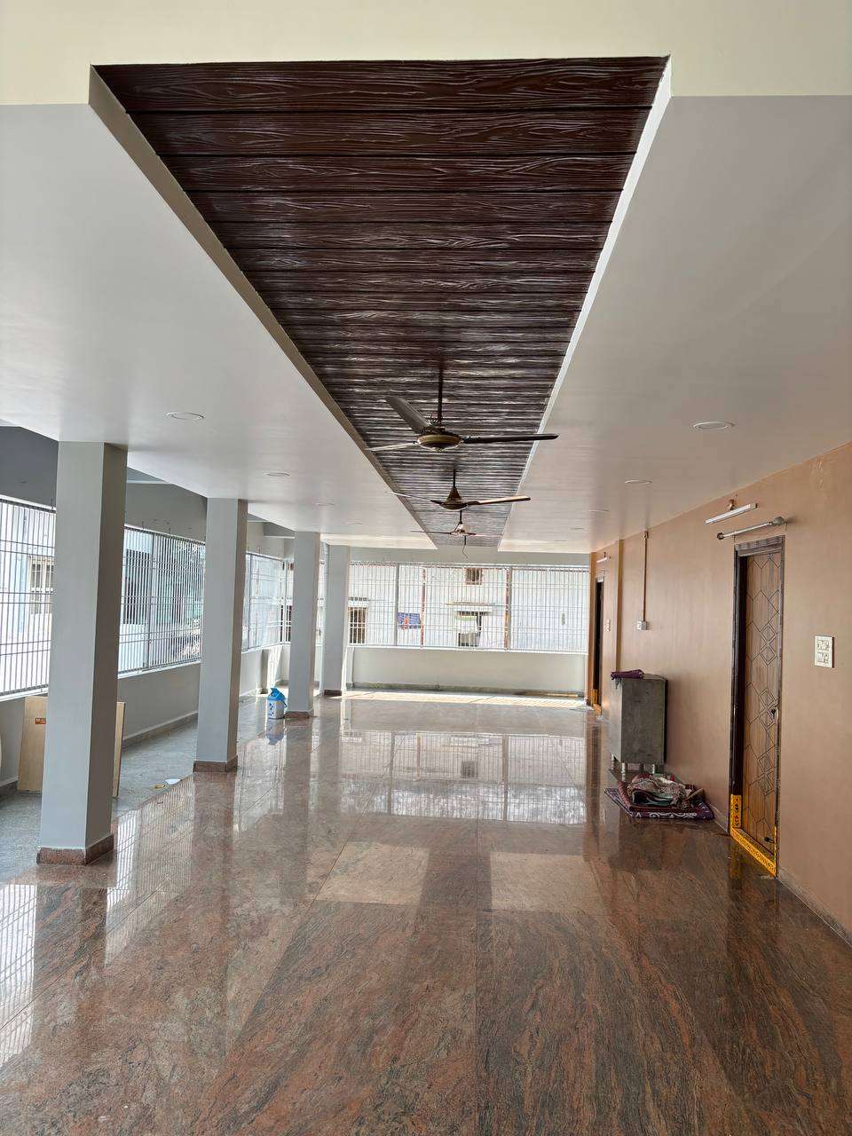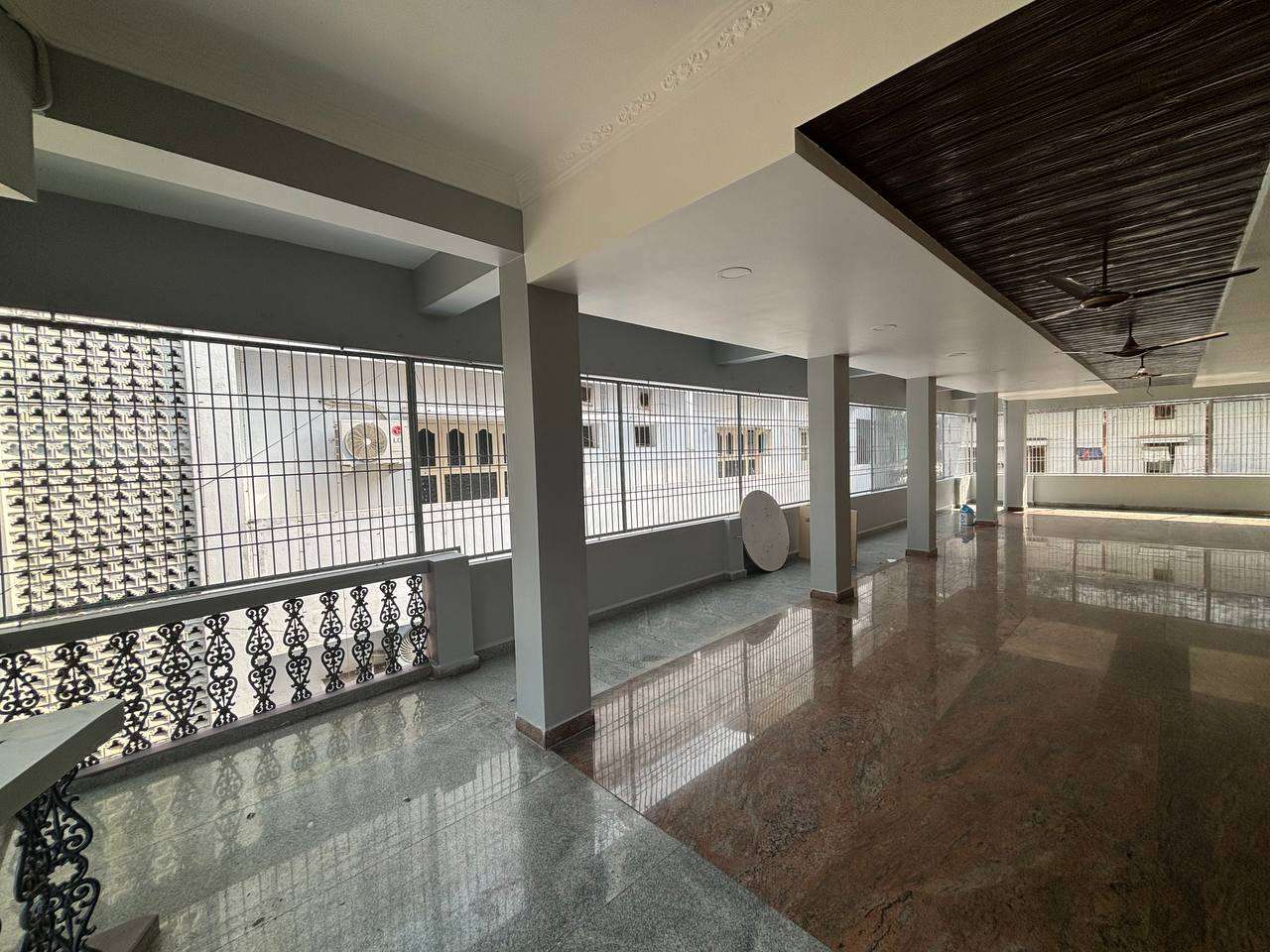 It is located in first floor contains one big hall and 2 private rooms includes cupboards in it with attached bathrooms.This is useful for Offices and Commercial buisiness franchises etc