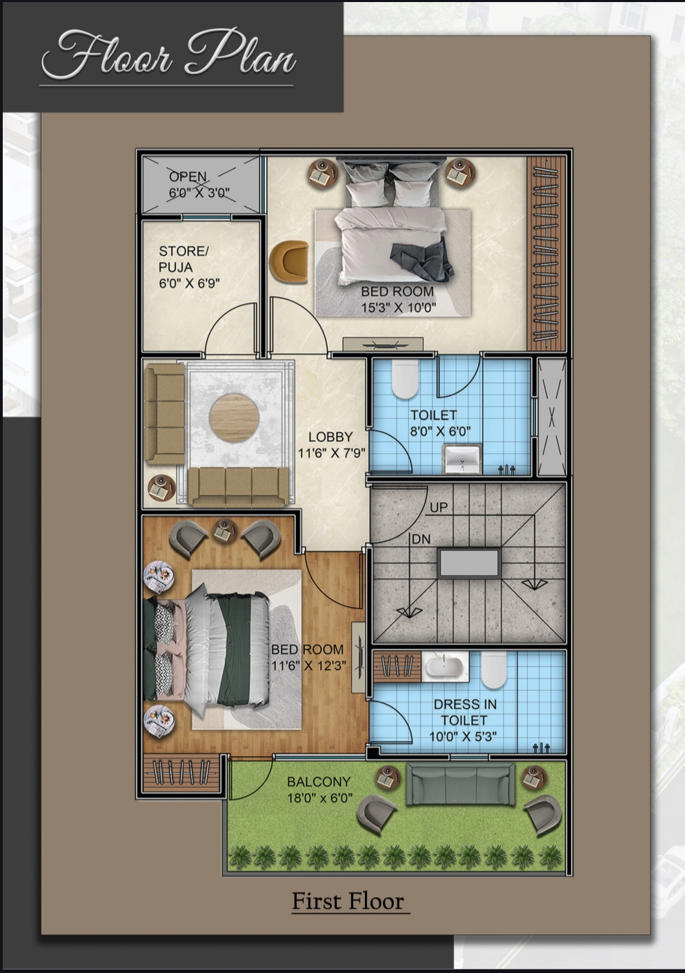 King size Balcony (6X18)ft