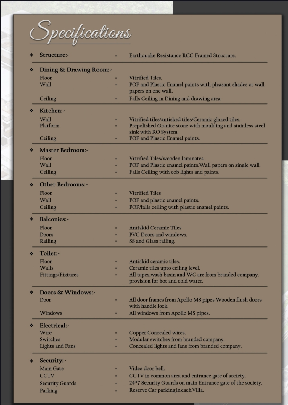 Reserve Car parking in each Villa