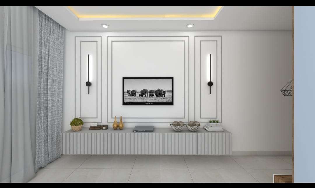 * False ceiling with triple lighting effect in living room and MBR.